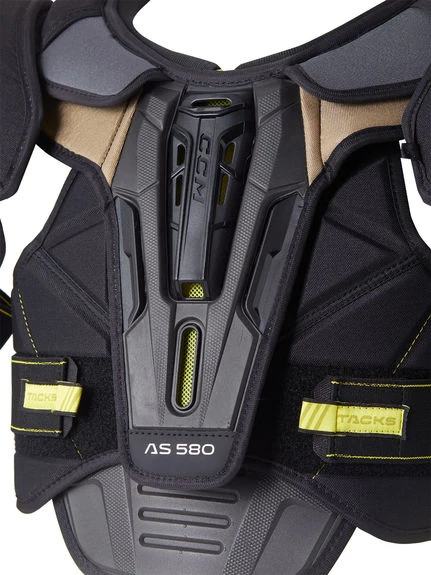 Pour cette nouvelle saison 2022 – 2023, CCM renouvelle complètement sa gamme Tacks en protections. Les épaulières Tacks AS580 ont été mises à jour avec les nouveaux graphismes dorés et offrent une excellente protection grâce à leur conception Anatomical Shield, ADPTFit, Vent-Tech et Flexmotion.